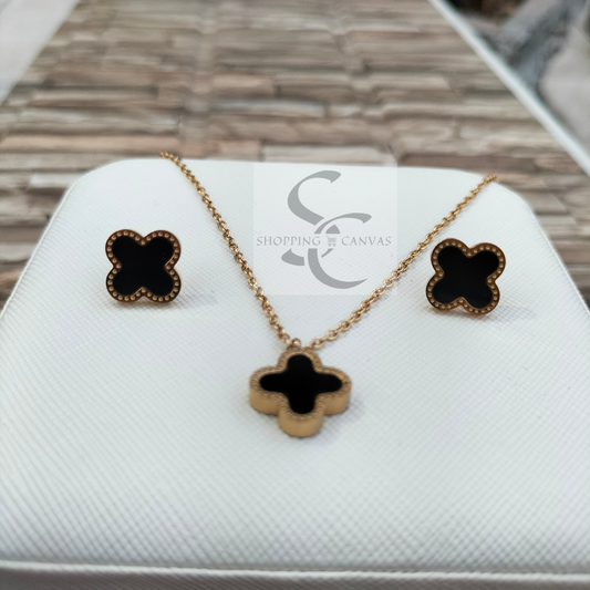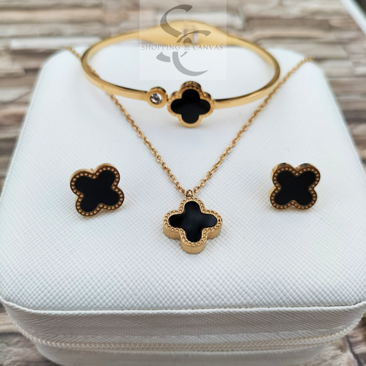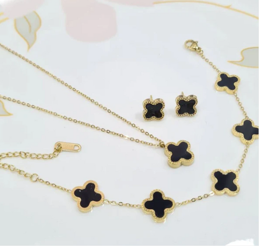 Van Cleef Clover Necklace, Chain & Steel Bracelets with Matching Stud Earrings