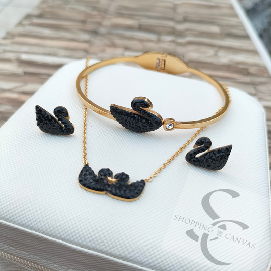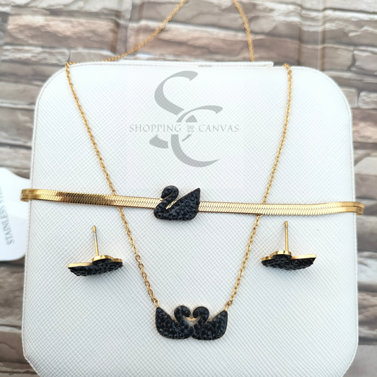 Swarovski Swan Double Duck Necklace, Steel Bracelet with matching stud earrings