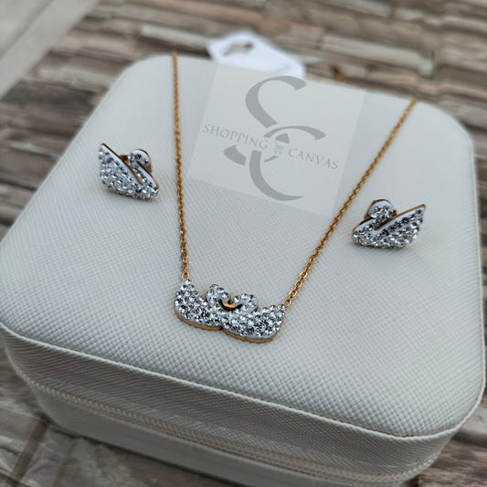 Swarovski Swan Duck Necklace with matching Stud Earrings